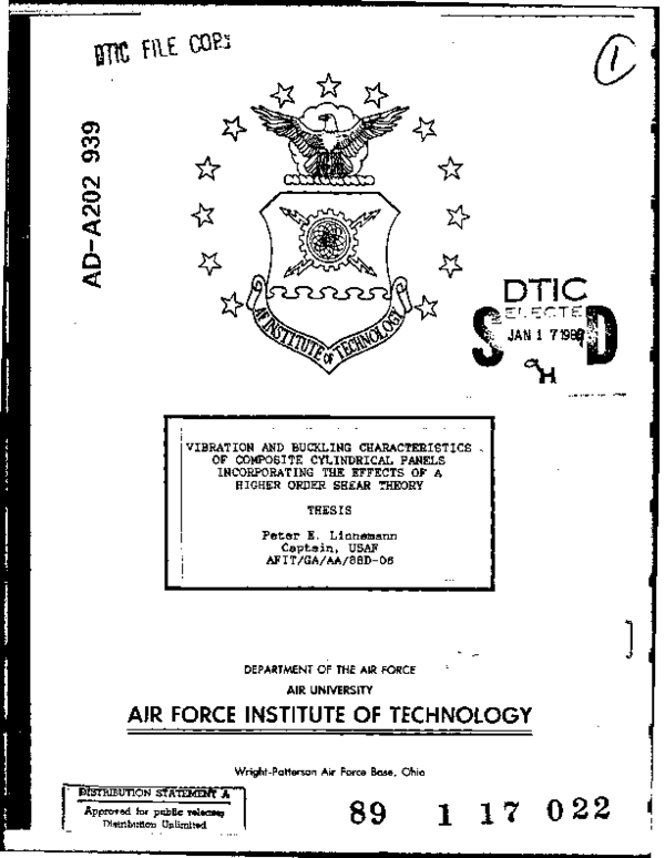 Pdf Vibration And Buckling Characteristics Of Composite Cylindrical Panels Incorporating The Effects Of A Higher Order Shear Theory Anthony Palazotto Academia Edu