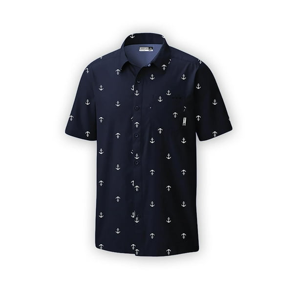 Mens Performance Short Sleeve Button Up Quick Dry Shirt 50 Upf Fishing Shirt Navy Size M Momentum Comfort Gear Walmart Com
