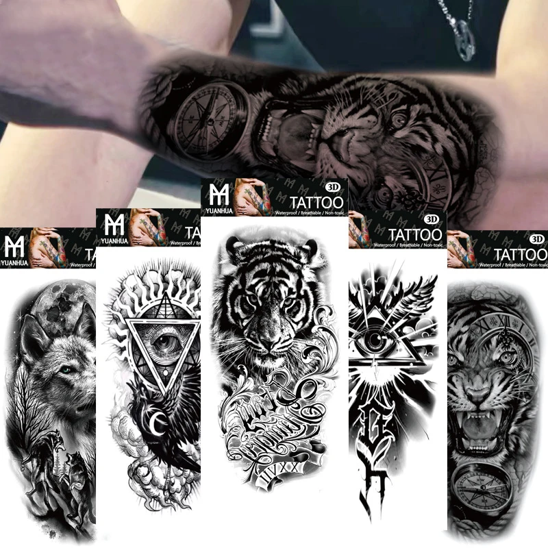 Black Forest Tattoo Sticker For Men Women Children Tiger Wolf Death Skull Temporary Tattoo Fake Henna Skeleton King Animal Tatoo Temporary Tattoos Aliexpress